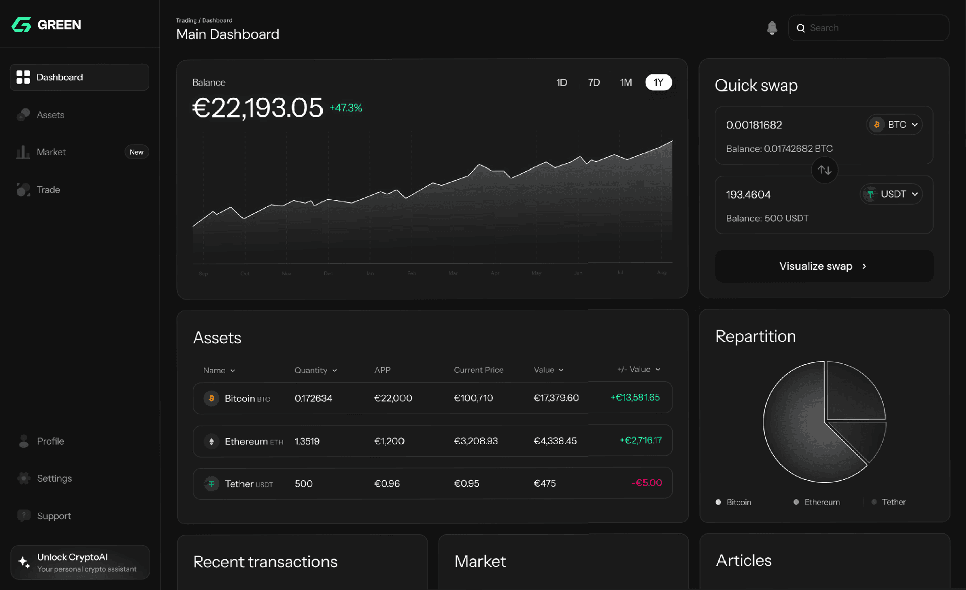 Deposit your cryptos or make a transfer to start trading.
